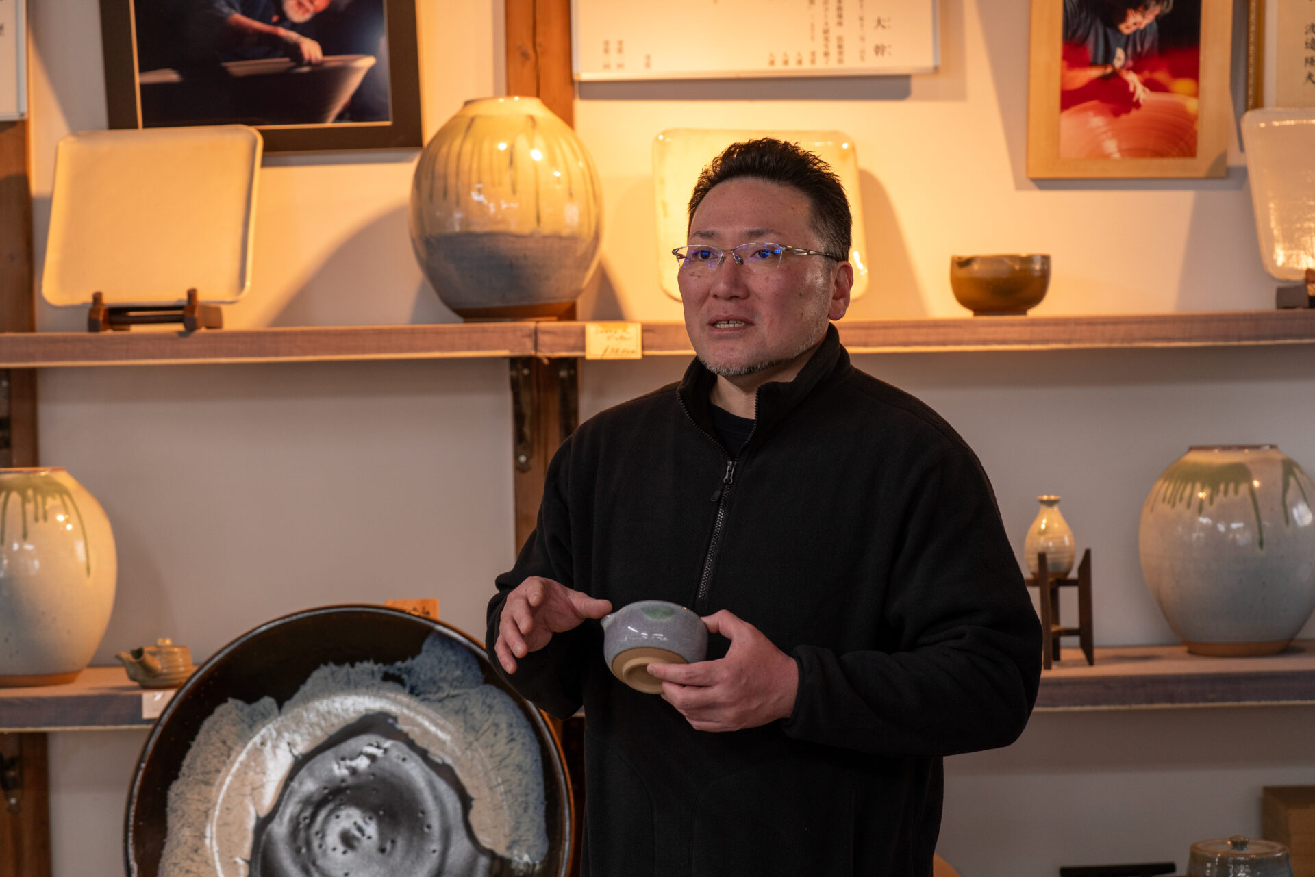 中学生の頃から、ろくろの掃除や器の運搬を手伝っていた。職人のおじさんたちに混ざって、当たり前のように作業場の空気を吸っていた。 高校を卒業しても就職活動はせず、「まあ、やってみるか」と家業に入った。 しかし、その「自然と」という言葉の裏には、幼少期からの膨大なインプットがあった。 「見て覚えろ」の世界だが、彼にとってはすでに見慣れた風景。高校卒業からわずか一ヶ月で、釉薬掛けという重要な工程を任されるようになったという。 「しばらくやっていると、手慣れた作業の中にも『あ、こういうことか』と気づく瞬間があるんです。」 教えられるのではなく、自分で腑に落とす。その静かな積み重ねが、今の彼の技術を支えている。