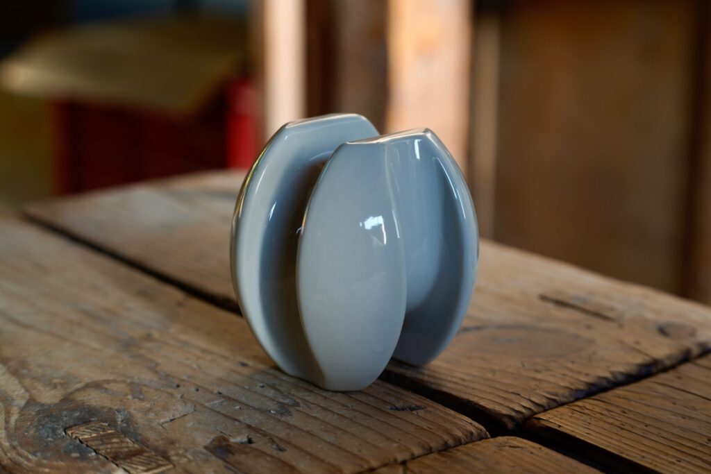 また、彼の作る器はとにかく「割れない」ことでも知られる。 「流紋焼の器、割れないですよね?」という問いに、弓田さんは即答した。 「そりゃそうだよ。碍子と同じ粘土を使ってるんだから。」 引っ張り強度1トン越えの磁器土。日常でガチャガチャ洗ってもびくともしない。「使ってもらわないと割れないし、割れないと次が売れないんだけどね。」という冗談めいた言葉の裏には、日用品としての圧倒的な信頼感がある。