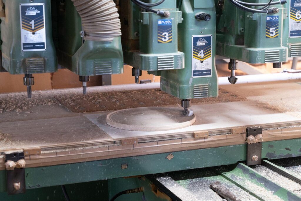 四十沢木材工芸の仕上がりを支えるのは、機械加工と手仕事の組み合わせだ。