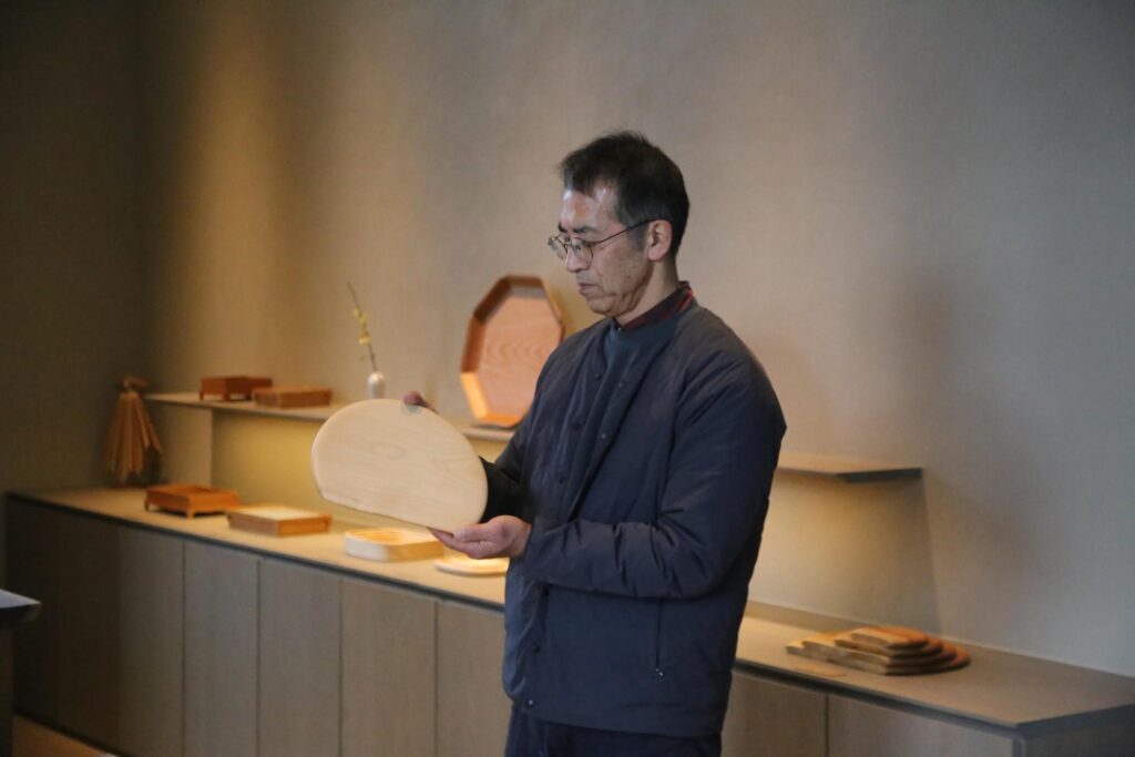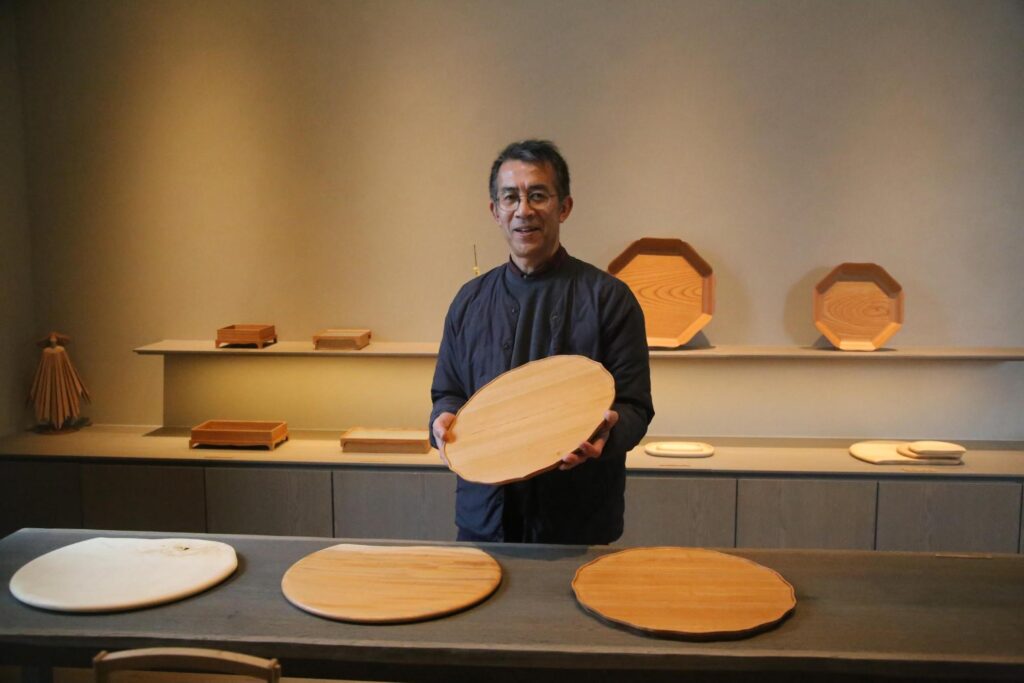 たとえば直径30cmの盆を作るには、相当太い木が必要になる。つまり、形の美しさだけでなく、材料そのものが持つ時間の厚みも背負っている。