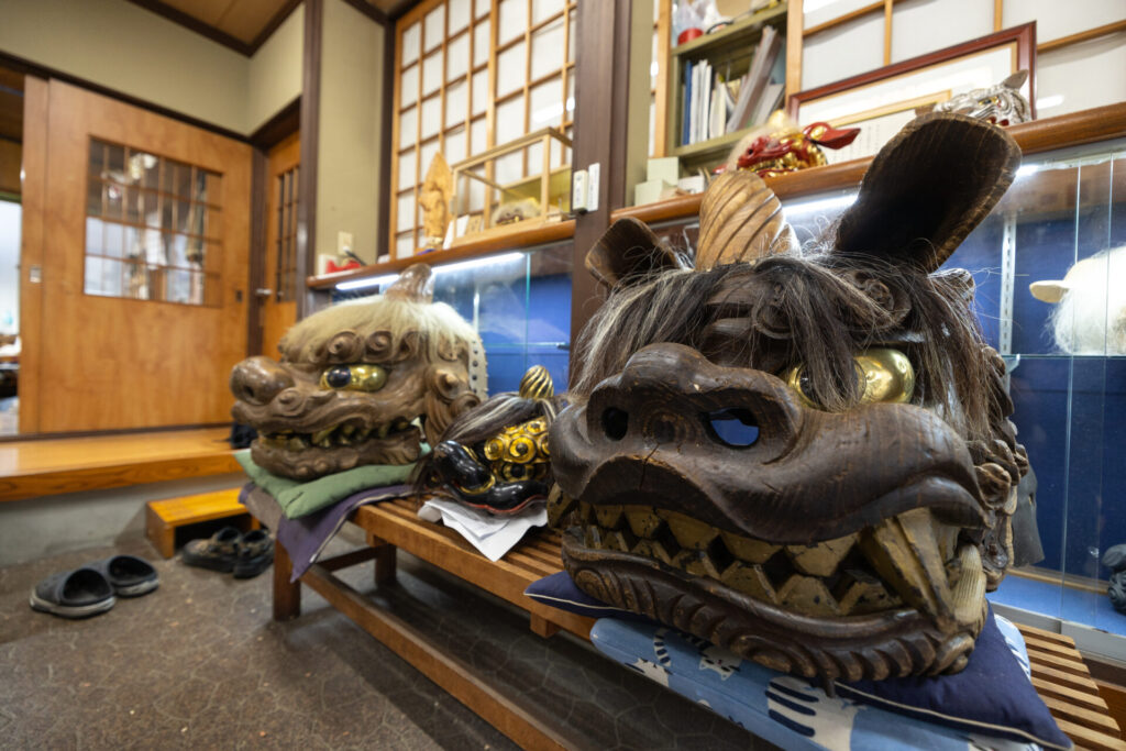 「ここにある大きい獅子頭は江戸時代の200年以上前のもの。古いものはもちろん、他の地域の獅子頭もお預かりして直します。獅子頭専門に修復する職人はあまりいないですからね」と知田さんは語る。