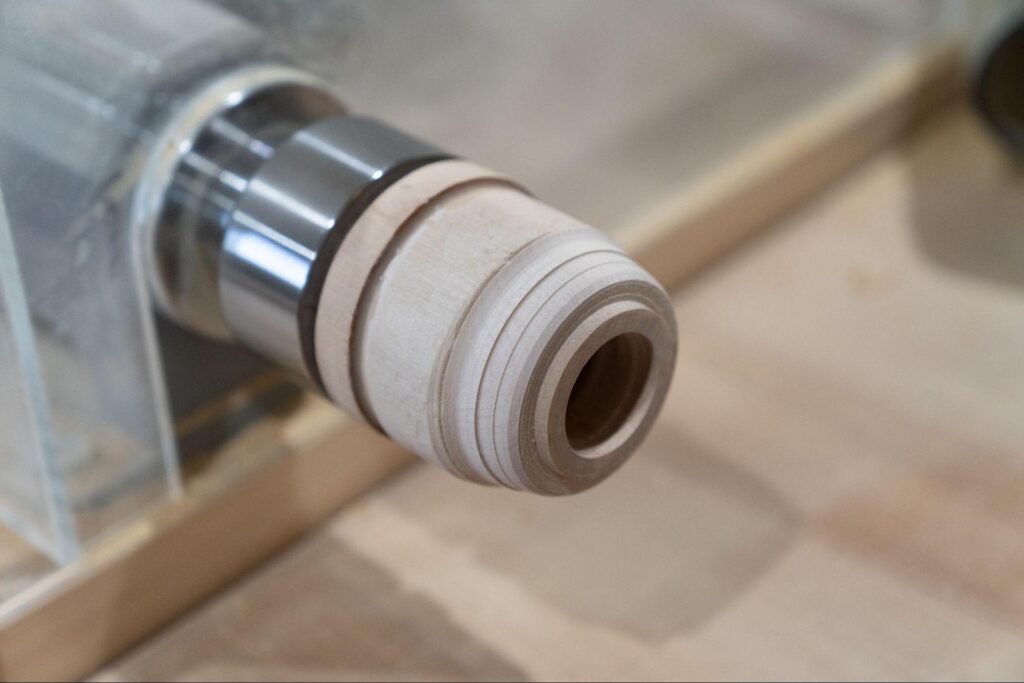 静寛では体験も行っている。絵付け体験は各地にあるが、木地挽きは珍しい。理由は明快だ。そもそも木地挽きをしている工房が少ないうえ、設備も高価で、技術も必要になる。